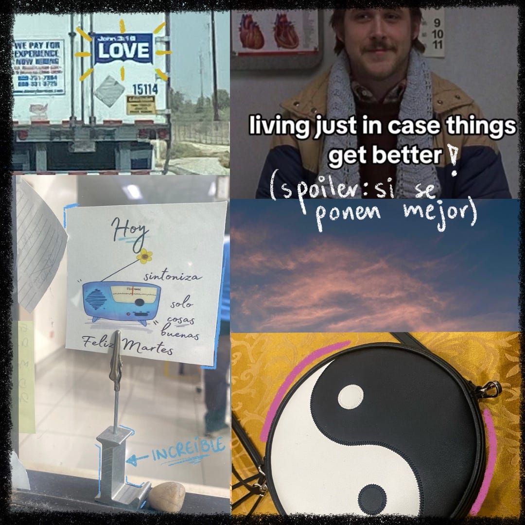 Una enfermera que conozco llegó a platicar conmigo y estuvo ahí las casi 2 horas que tuve que esperar, eso me sirvió para despejar mi mente, hablar de cosas divertidas, y para que surgiera esta carta porque entre la plática me preguntó: ¿Qué significa este símbolo (señalando mi bolsa de ying yang).
