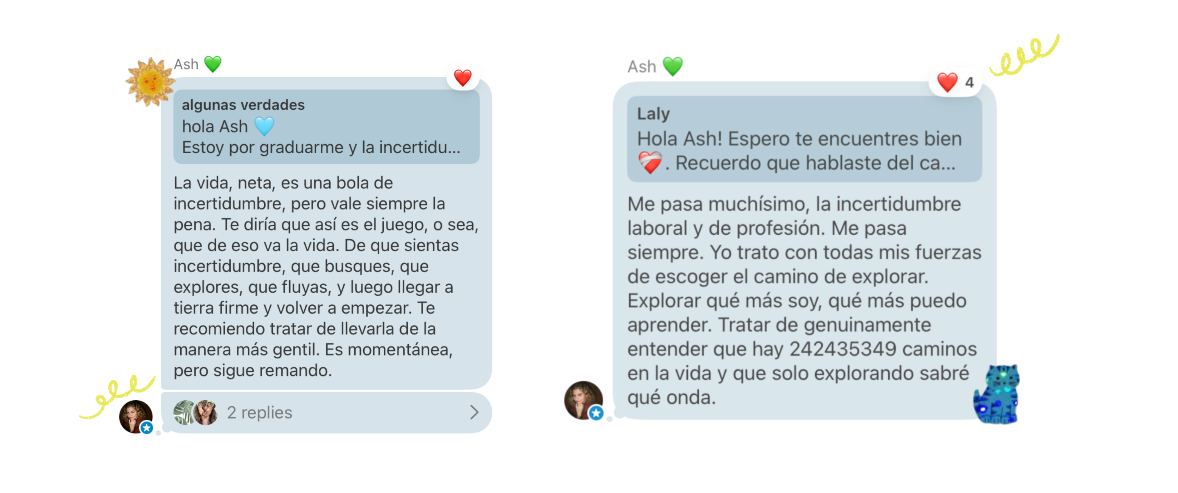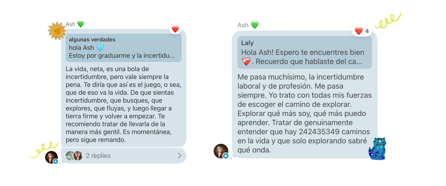 Ash 💚 creo un chat por aquí en el que los domingos por la noche manda un mensajito para poder conectar más con su comunidad, uno de esos domingos abrió una sección de preguntas y respuestas en las que muchas chicas hicieron preguntas valiosísimas, te dejo por aquí algunas respuestas que me guardé: